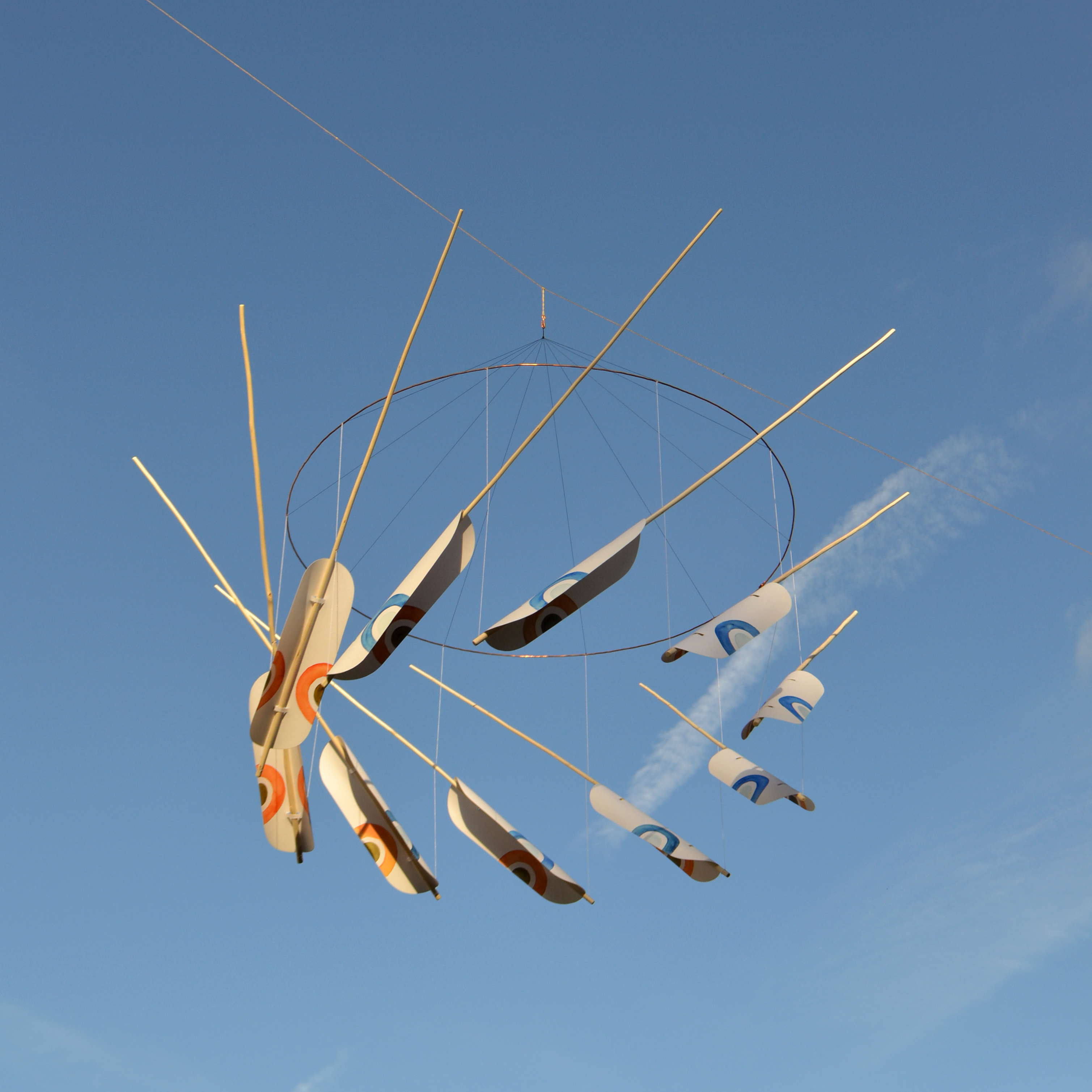 Mobile en papier, cuivre et noisetier.